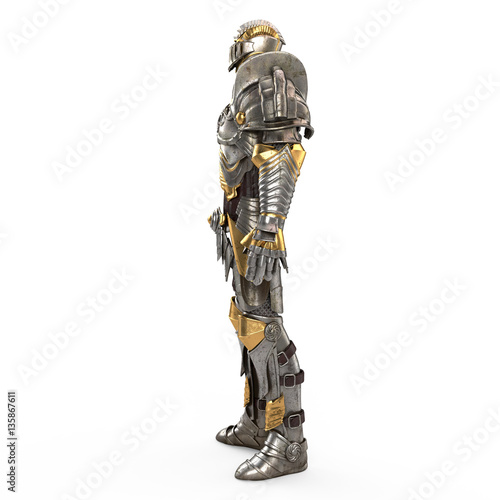 © pit3dd, Fototapeta premium Full medieval iron suit, isolated on a white background. 3d illustration