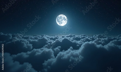 © junet, Fototapeta premium Full moon above clouds night sky starry background
