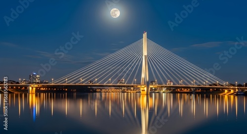 © Lugia Agung, Obraz premium Full Moon Above Suburban Rooftops