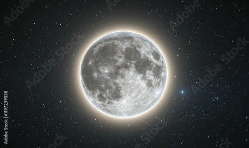 © Murda, Fototapeta premium Full moon and many stars in dark space.