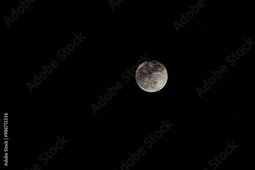 Obraz premium Full moon at night with dark sky background, Black and white.