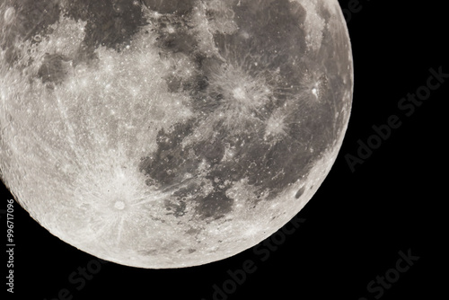 Naklejka premium Full Moon detail. Telescope 1200mm. Real image