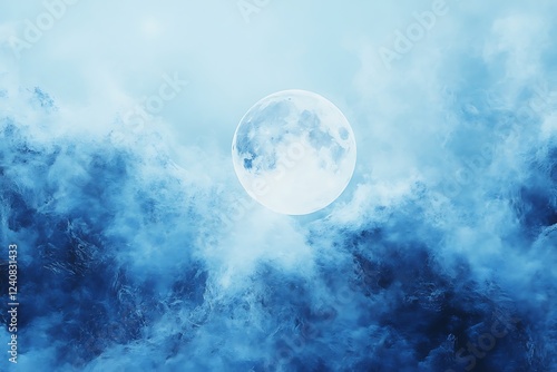 © Diki prayoga, Fototapeta premium Full Moon Emerging Through Blue Cloudy Sky