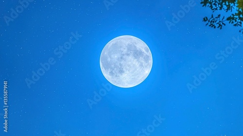© bunga, Fototapeta premium Full moon glowing brightly in night sky, stars visible