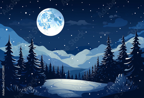 Naklejka premium Full Moon Glowing in the Night Sky