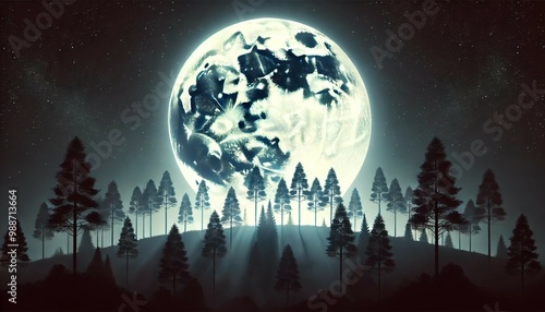 Fototapeta premium Full Moon Glowing Over Tree Silhouettes at Night