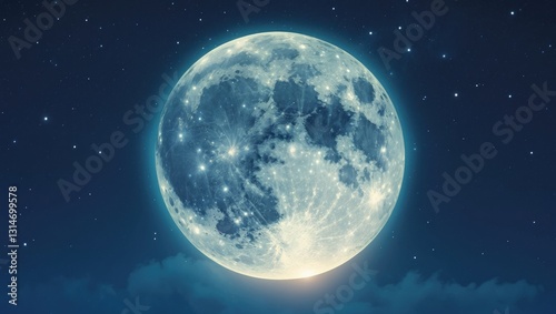 © -Quantum Pixels-, Obraz premium Full moon graphic featuring empty space for text