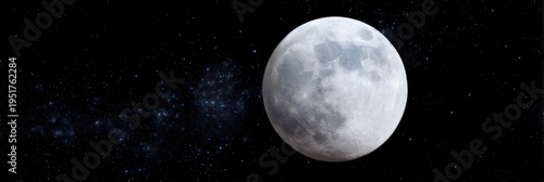 Fototapeta premium Full moon illuminated against starry night sky panorama