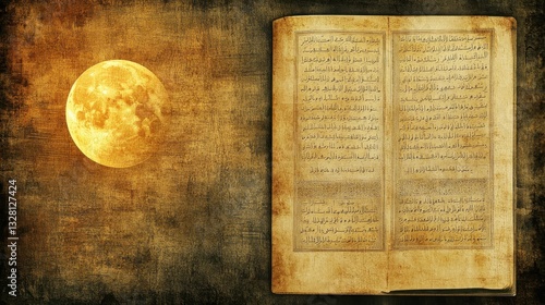 Obraz premium Full Moon Illuminates Ancient Quranic Text