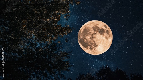 © AkuAku, Fototapeta premium Full moon illuminating a night sky