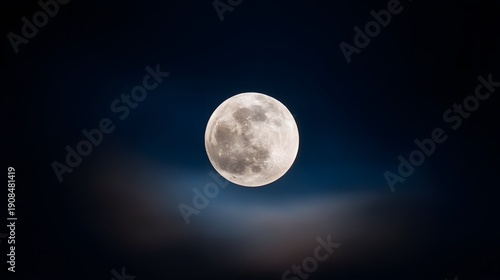 © Jojo*, Fototapeta premium Full Moon Illuminating the Night Sky with Wispy Clouds.