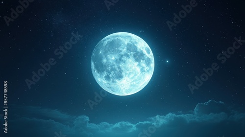 Fototapeta premium Full Moon in a Starry Night Sky with Clouds