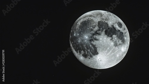© Giovanni, Obraz premium Full moon in black and white with detailed lunar surface features illuminated against a dark sky