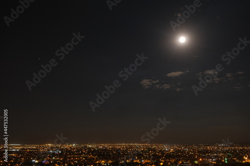 © SKahraman, Naklejka premium Full moon in Konya sky and city lights by taken photo from of the hill and aerial view