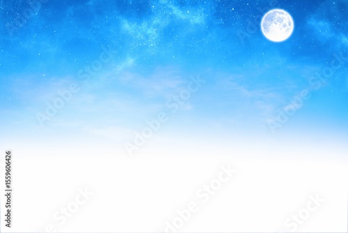 Fototapeta premium Full moon is hovering on flat night sky with stars fading into white gradient, copy space