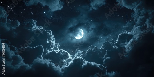 © Alexandr, Fototapeta premium Full Moon Night Sky Clouds