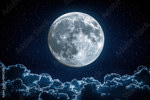 Fototapeta premium Full Moon Night Sky Clouds Stars Celestial Night Space Lunar Astronomy Galaxy Universe Dark
