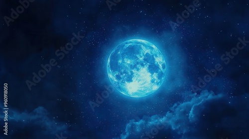 © Narongsag, Fototapeta premium Full Moon Night Sky with Stars and Clouds