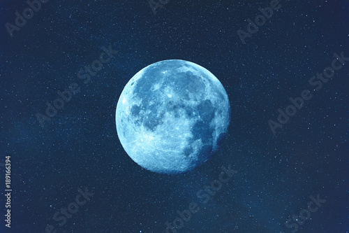 © astrosystem, Obraz premium Full Moon on a dark starry sky with Milky Way silhouettes.