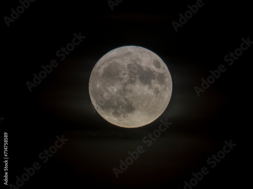 Naklejka premium Full moon on night sky background, beautiful moon planet on space, close up view photo