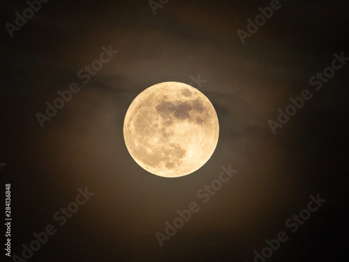 Fototapeta premium Full moon on the dark night shining on the sky in cloudy day.
