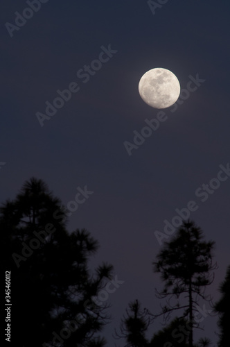 © Víctor, Fototapeta premium Full moon over a forest of Canary island pine Pinus canariensis. Integral Natural Reserve of Inagua. Tejeda. Gran Canaria. Canary Islands. Spain.