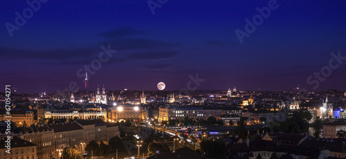 © MaciejBledowski, Naklejka premium Full moon over city, Prague at night, Czech republic.