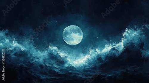 Fototapeta premium Full moon over dark clouds at night, mystical scene, fantasy background