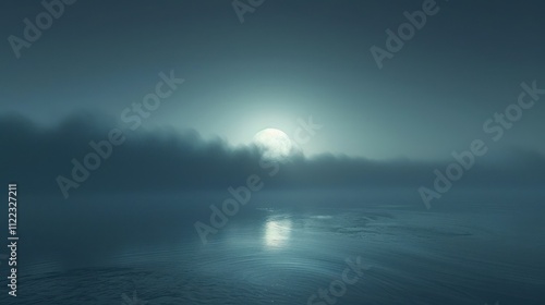 © hazia, Fototapeta premium Full moon over misty lake at night.