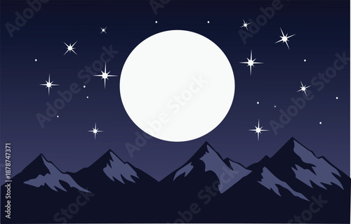 Obraz premium Full Moon Over Mountain Range at Starry Night