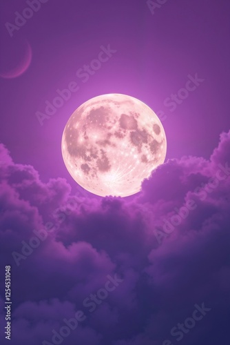 © Designer Khalifa, Obraz premium full moon over purple cloudy sky