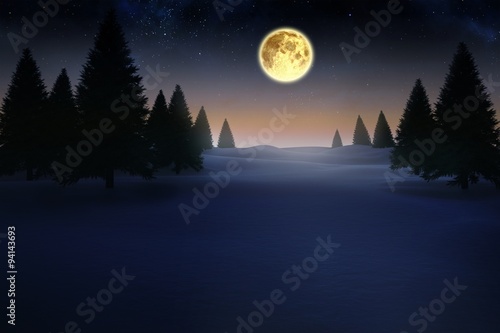 © vectorfusionart, Naklejka premium Full moon over snowy landscape
