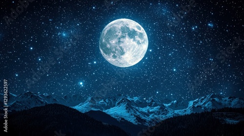 © RONNY, Fototapeta premium Full moon over snowy mountains at night