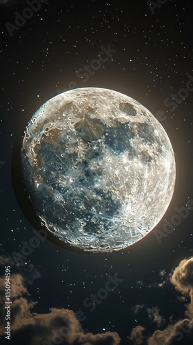 © zulie, Fototapeta premium Full moon over starlit clouds