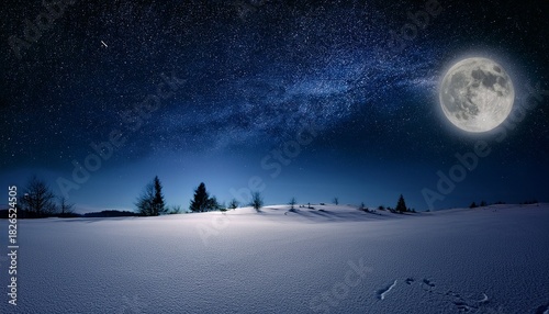 Naklejka premium Full Moon Over Starry Winter Night Snowfield