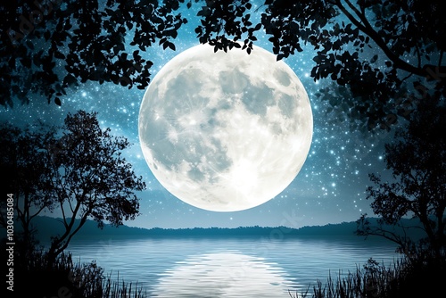 © MohdAdzmer, Naklejka premium full moon over the lake