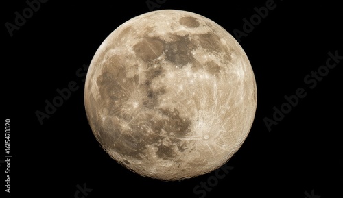© Ruslan, Fototapeta premium Full moon, pale tan-gray, detailed craters