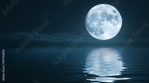 Fototapeta premium Full Moon Reflected in Calm Water at Night