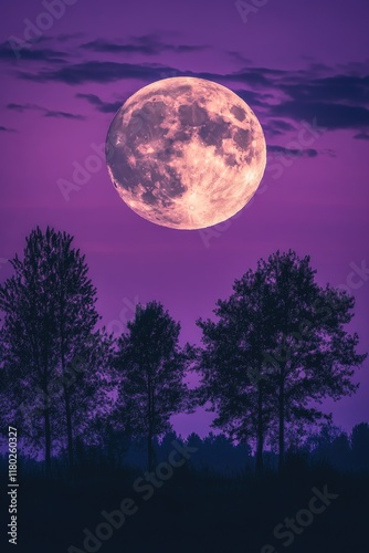 © Goncharenko, Fototapeta premium Full moon rising over trees