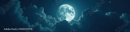 Obraz premium Full moon's eerie glow peeks through heavy, storm clouds , backdrop, horror,...