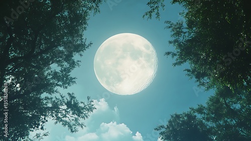 © diyanskb1018, Fototapeta premium Full moon shining against blue sky images