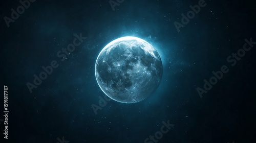 Fototapeta premium Full Moon Shining Brightly in Dark Outer Space Background with Stars