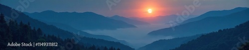 © methinee, Obraz premium Full moon shining through misty mountain valley, peaceful, landscape, atmosphere