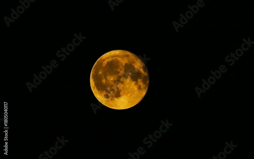 © moreidea, Obraz premium Full moon surface shine on dark sky astronomy background, close macro detail