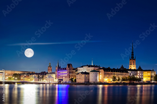 Obraz premium Full Moon, The Super Moon in 2015, rising over Stockholm.
