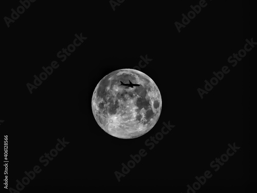 Obraz premium full moon with a plane