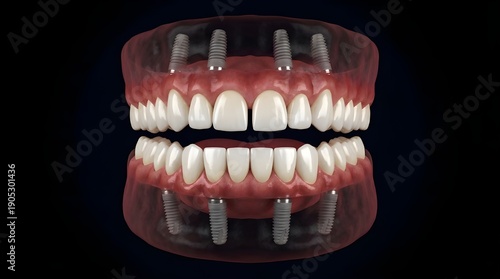Obraz premium Full-Mouth Dental Implants Upper and Lower Rendering