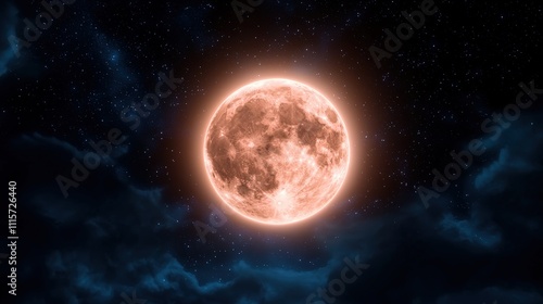 Obraz premium Full Orange Moon Night Sky Celestial Space Stars Night Clouds Lunar...