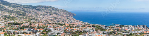 Fototapeta premium Full panoramic aerial view of the city of Funchal and Camara de Lobos,...