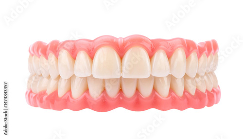 © photostockatinat, Fototapeta premium Full set of dentures, front view, isolated on white background